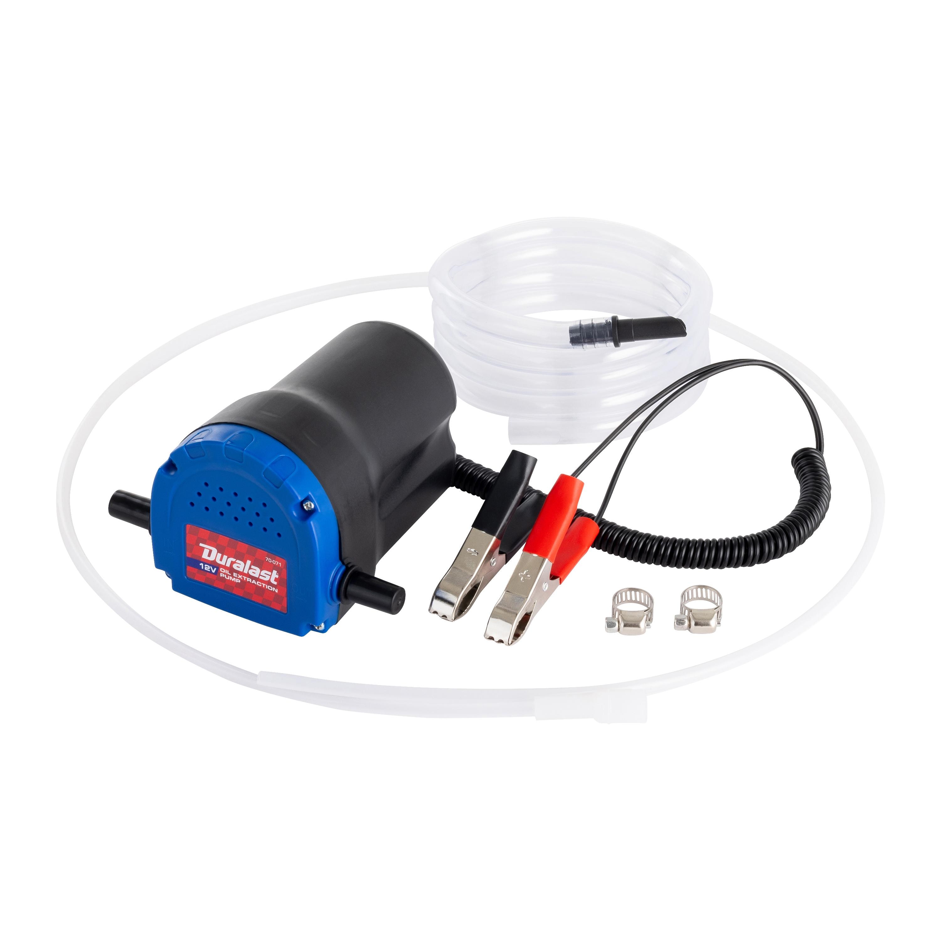 The 70-071 12V Oil Extraction Pump provides quick, efficient fluid removal without the mess of traditional draining. Easily connecting to any 12V battery, it’s ideal for cars, boats, lawn equipment, and other small engines. The pump includes a 46” 6 mm suction hose and 58” 10 mm evacuation hose for extended reach and smooth operation. Designed for use with motor oil, heating oil, and diesel, it delivers clean, hassle-free extraction.